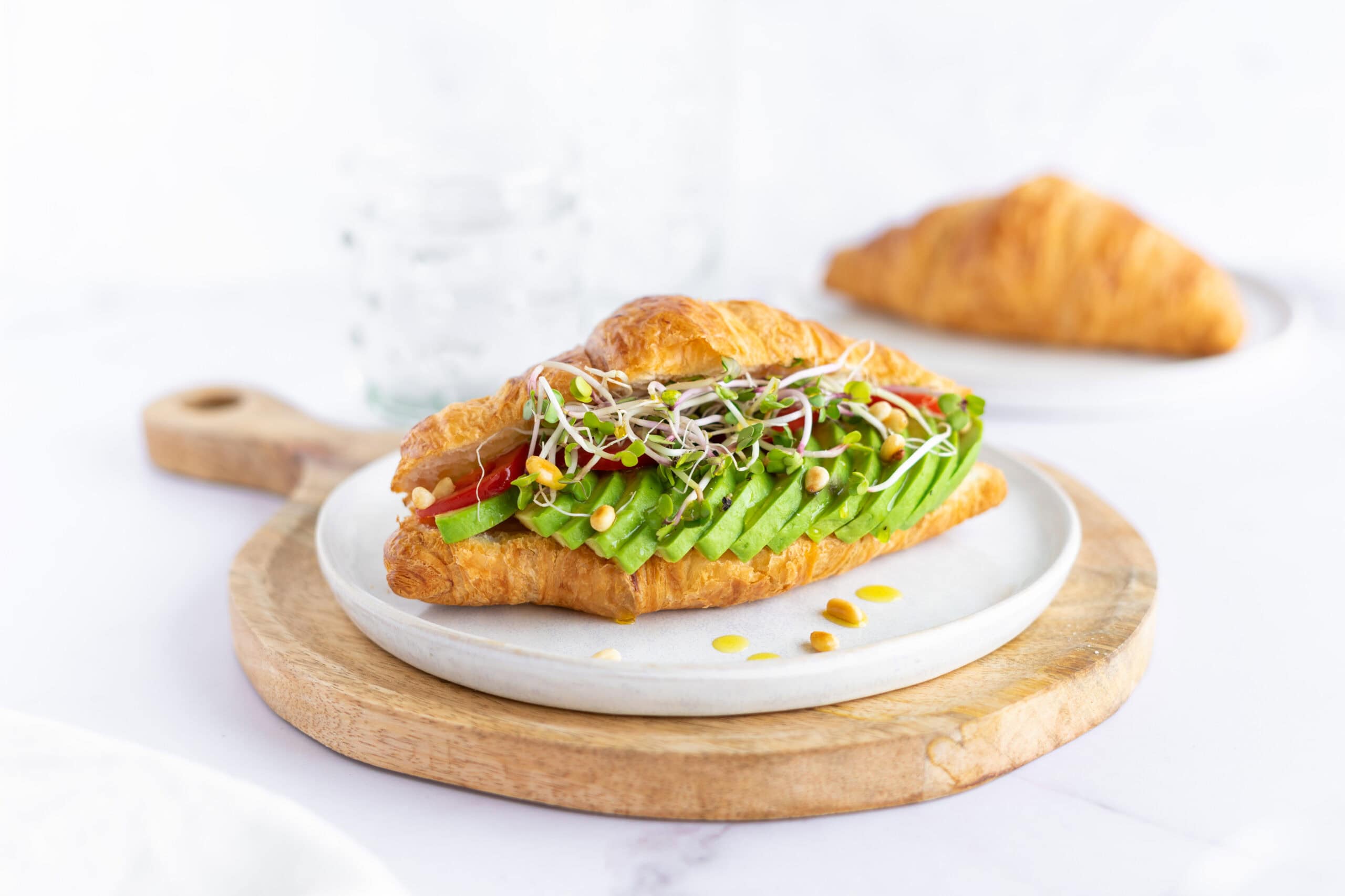 Dit is het ultieme ontbijt op een luie zondagochtend als je het mij vraagt. Een vegan gevulde croissant met alleen maar lekkers! Ik vulde ‘m met avocado’s uit het seizoen en kiemgroente, maar voel je vrij om voor een compleet andere vulling te gaan.